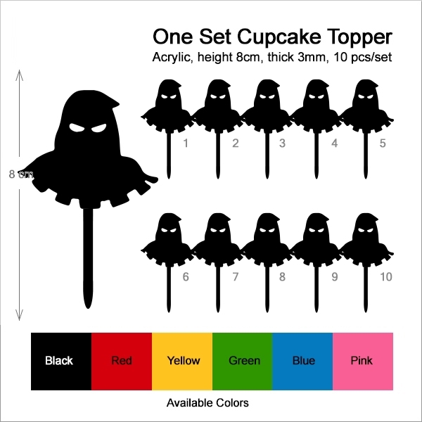Executioner Death Mask Cupcake 10 Toppers Laser Cut Acrylic for Wedding Birthday Baby Shower Bachelorette Engagement Party Decor