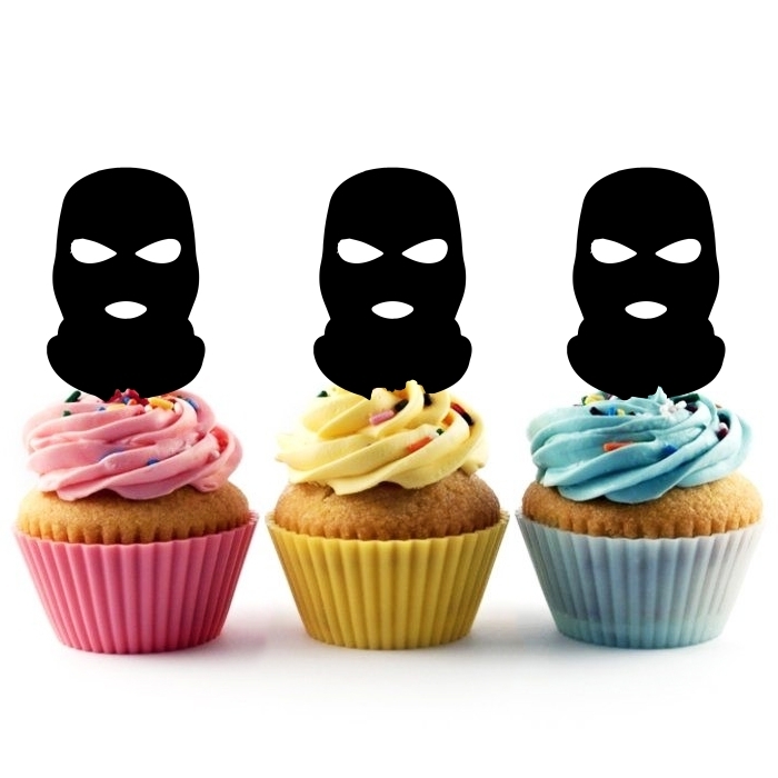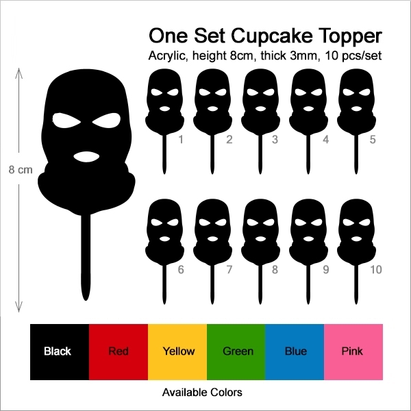 Terrorist Mask Cupcake 10 Toppers Laser Cut Acrylic for Wedding Birthday Baby Shower Bachelorette Engagement Party Decor