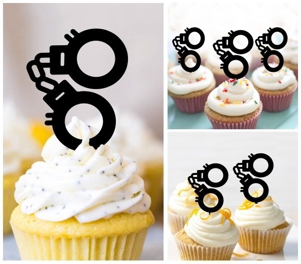Handcuffs Cupcake 10 Toppers Laser Cut Acrylic for Wedding Birthday Baby Shower Bachelorette Engagement Party Decor