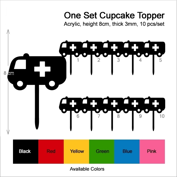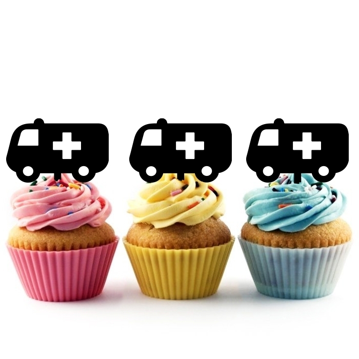 Emergency Car Ambulance Cupcake 10 Toppers Laser Cut Acrylic for Wedding Birthday Baby Shower Bachelorette Engagement Party Decor