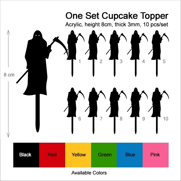 Death Grim Reaper Cupcake 10 Toppers Laser Cut Acrylic for Wedding Birthday Baby Shower Bachelorette Engagement Party Decor