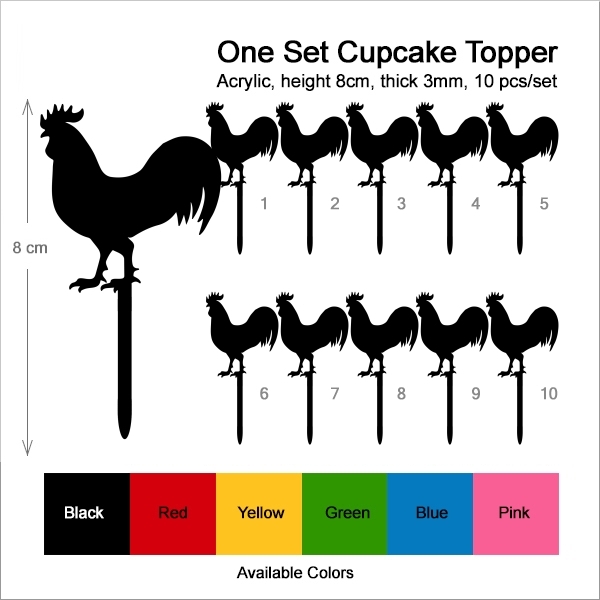 Combed Rooster Cupcake 10 Toppers Laser Cut Acrylic for Wedding Birthday Baby Shower Bachelorette Engagement Party Decor