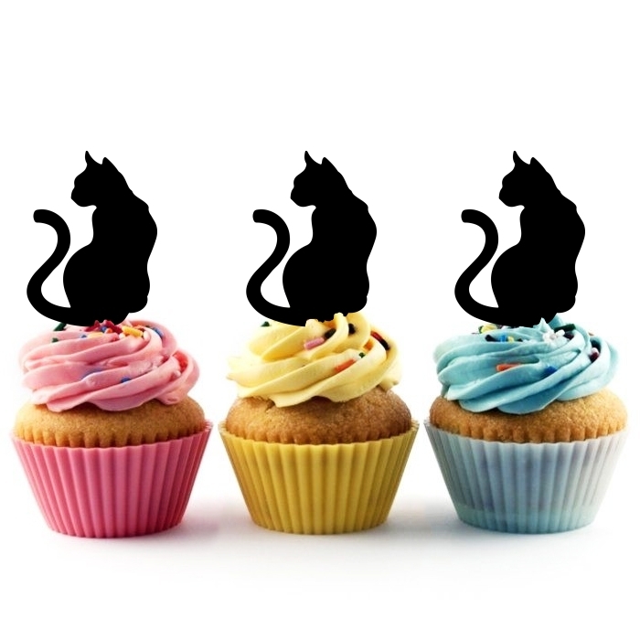 Sitting Cat Back Cupcake 10 Toppers Laser Cut Acrylic for Wedding Birthday Baby Shower Bachelorette Engagement Party Decor