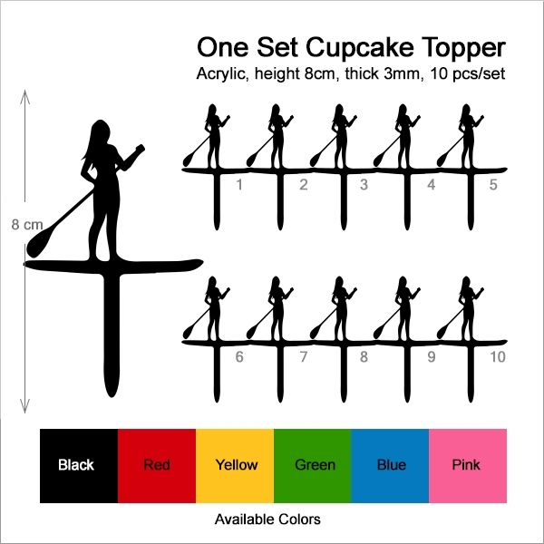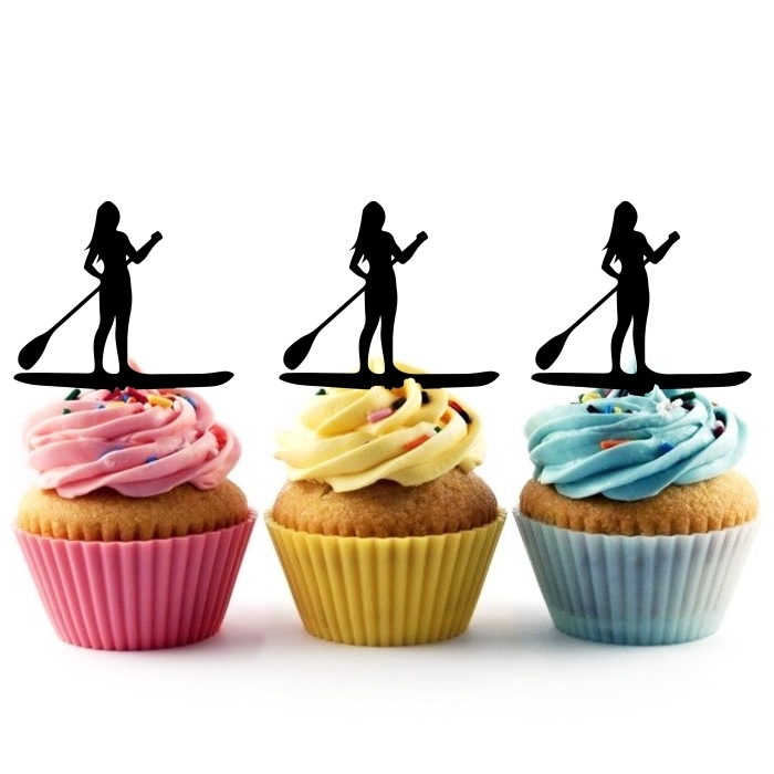 Stand Up Paddle Board Girl Cupcake 10 Toppers Laser Cut Acrylic for Wedding Birthday Baby Shower Bachelorette Engagement Party Decor