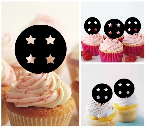 Four Star Ball Cupcake 10 Toppers Laser Cut Acrylic for Wedding Birthday Baby Shower Bachelorette Engagement Party Decor