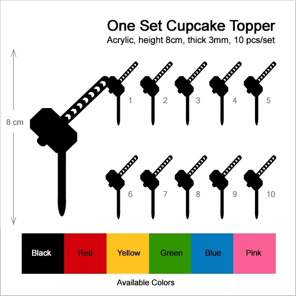 Thor Hammer Cupcake 10 Toppers Laser Cut Acrylic for Wedding Birthday Baby Shower Bachelorette Engagement Party Decor