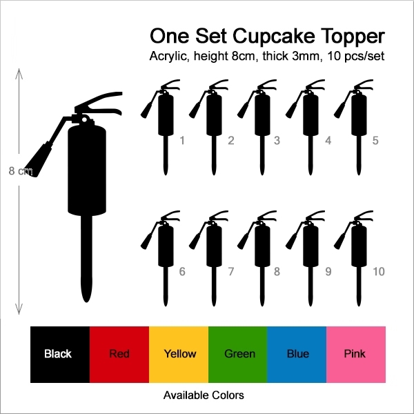 Fire Extinguisher Equipment Cupcake 10 Toppers Laser Cut Acrylic for Wedding Birthday Baby Shower Bachelorette Engagement Party Decor