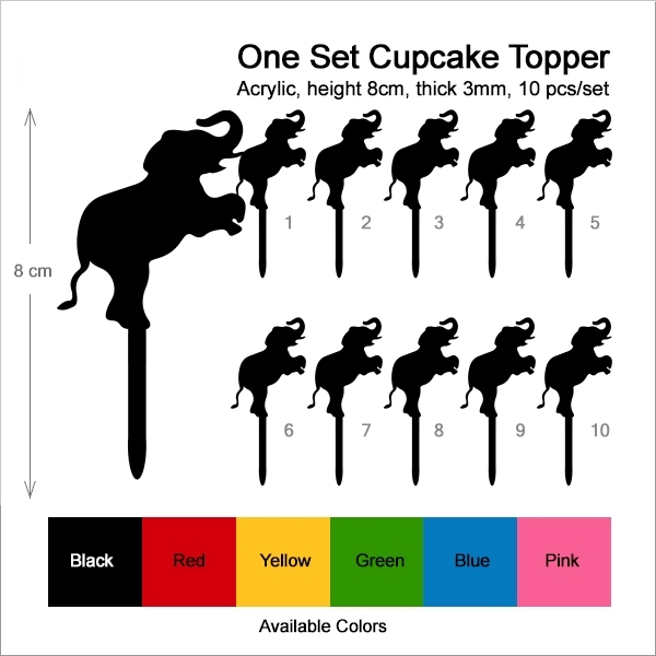 Elephant Circus Cupcake 10 Toppers Laser Cut Acrylic for Wedding Birthday Baby Shower Bachelorette Engagement Party Decor