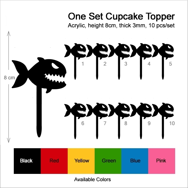 Piranha Fish Cupcake 10 Toppers Laser Cut Acrylic for Wedding Birthday Baby Shower Bachelorette Engagement Party Decor