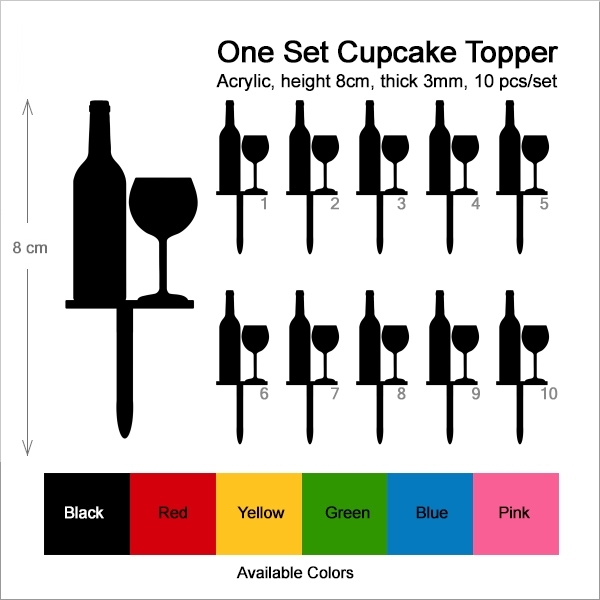 Wine Bottle Glass Cupcake 10 Toppers Laser Cut Acrylic for Wedding Birthday Baby Shower Bachelorette Engagement Party Decor