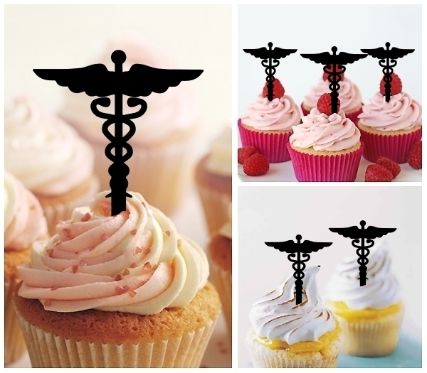 Caduceus Health Care Medical Cupcake 10 Toppers Laser Cut Acrylic for Wedding Birthday Baby Shower Bachelorette Engagement Party Decor