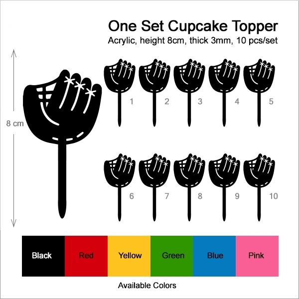 Baseball Glove Cupcake 10 Toppers Laser Cut Acrylic for Wedding Birthday Baby Shower Bachelorette Engagement Party Decor