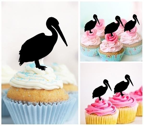 Pelican Bird Cupcake 10 Toppers Laser Cut Acrylic for Wedding Birthday Baby Shower Bachelorette Engagement Party Decor