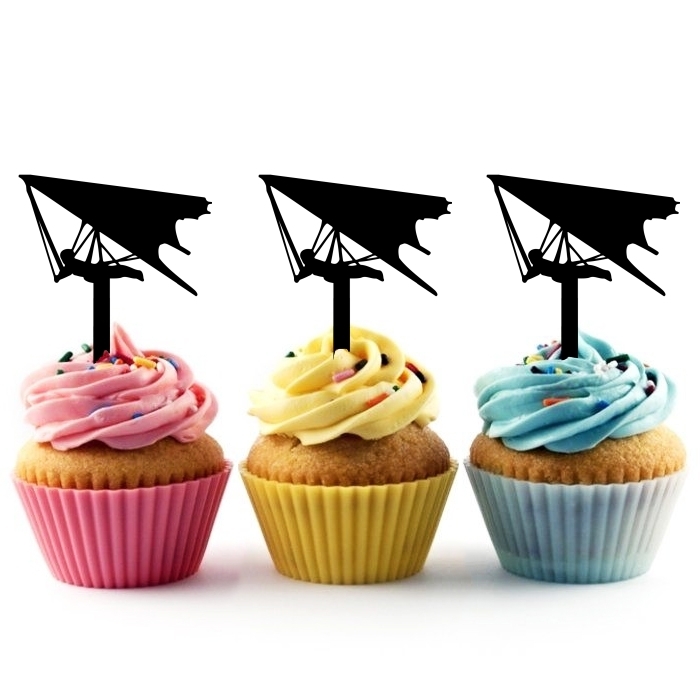 Hang Glider Cupcake 10 Toppers Laser Cut Acrylic for Wedding Birthday Baby Shower Bachelorette Engagement Party Decor