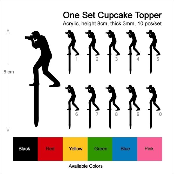 Photographer Cupcake 10 Toppers Laser Cut Acrylic for Wedding Birthday Baby Shower Bachelorette Engagement Party Decor