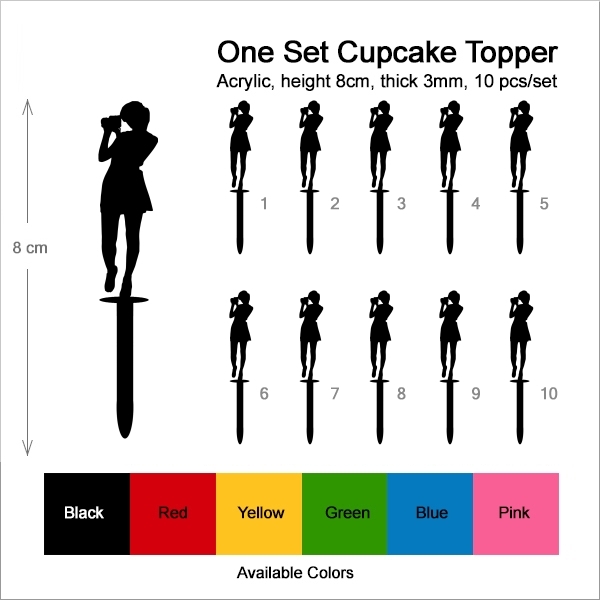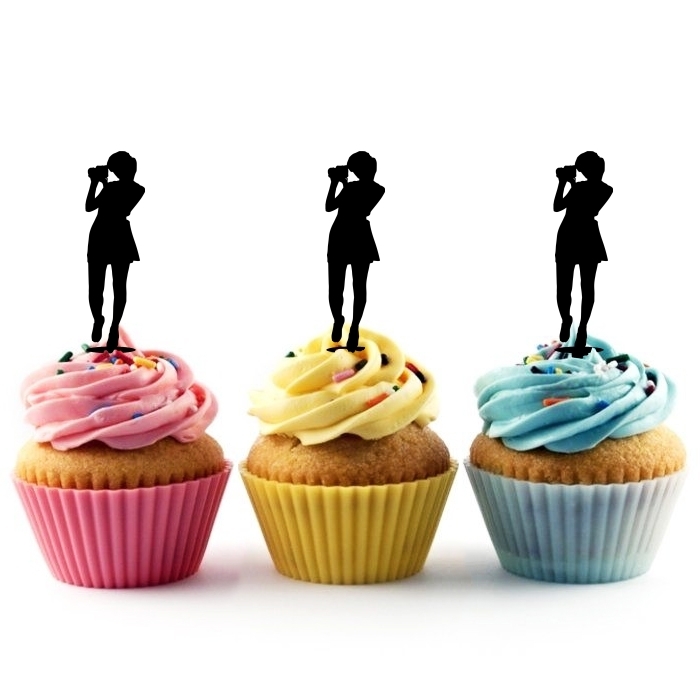 Photographer Female Cupcake 10 Toppers Laser Cut Acrylic for Wedding Birthday Baby Shower Bachelorette Engagement Party Decor