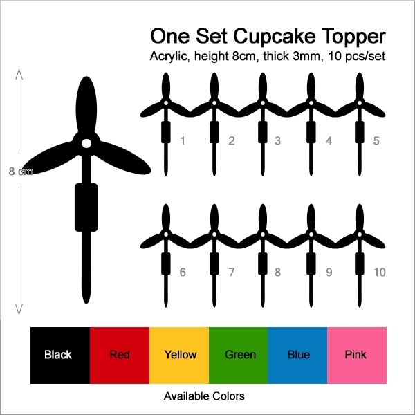Modern Windmill Cupcake 10 Toppers Laser Cut Acrylic for Wedding Birthday Baby Shower Bachelorette Engagement Party Decor