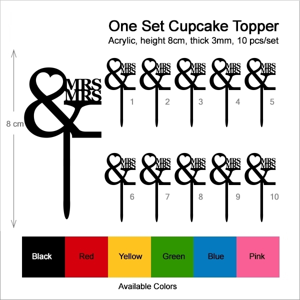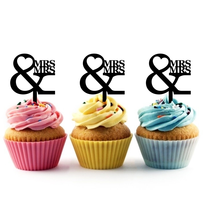 MRS and MRS Cupcake 10 Toppers Laser Cut Acrylic for Wedding Birthday Baby Shower Bachelorette Engagement Party Decor