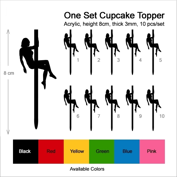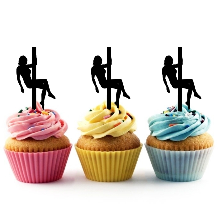 Pole Dance Female Cupcake 10 Toppers Laser Cut Acrylic for Wedding Birthday Baby Shower Bachelorette Engagement Party Decor