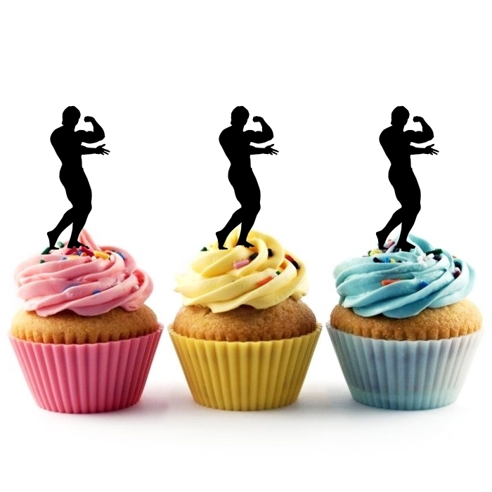 Muscle Fitness Man Cupcake 10 Toppers Laser Cut Acrylic for Wedding Birthday Baby Shower Bachelorette Engagement Party Decor