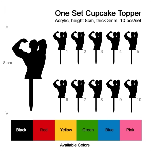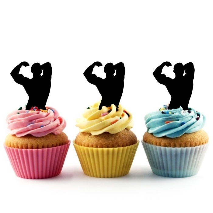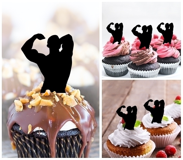 Muscle Fitness Gim Cupcake 10 Toppers Laser Cut Acrylic for Wedding Birthday Baby Shower Bachelorette Engagement Party Decor
