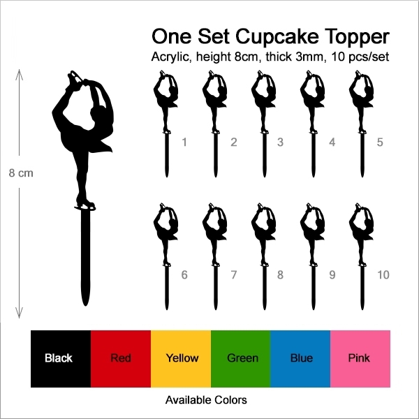 Female Skating Cupcake 10 Toppers Laser Cut Acrylic for Wedding Birthday Baby Shower Bachelorette Engagement Party Decor