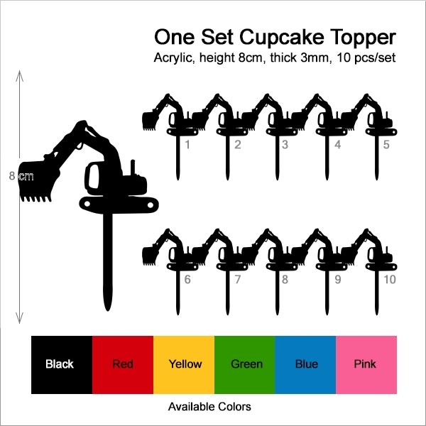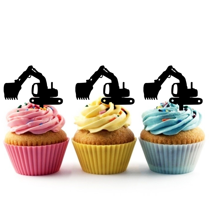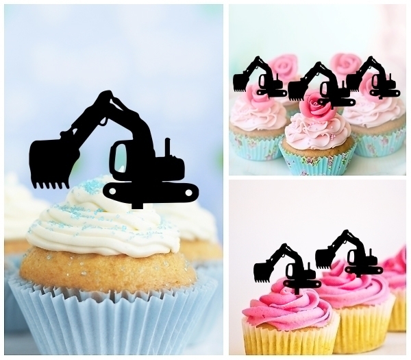 Backhole Digger Machine Cupcake 10 Toppers Laser Cut Acrylic for Wedding Birthday Baby Shower Bachelorette Engagement Party Decor