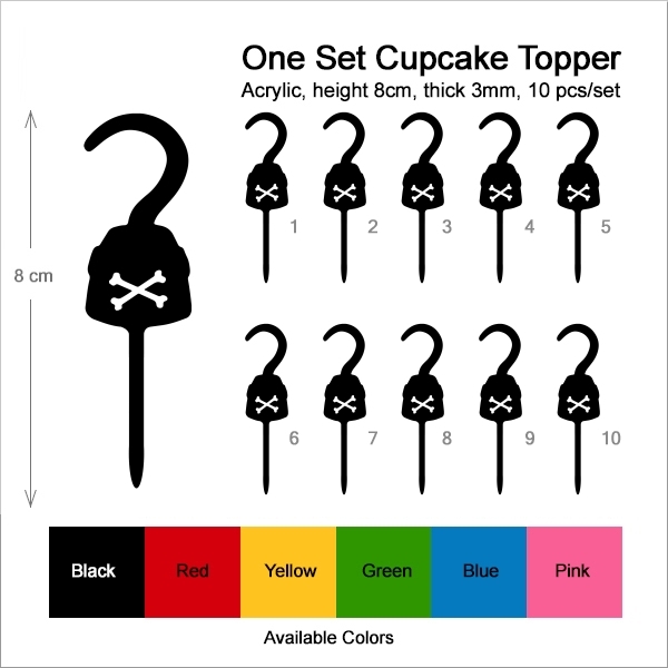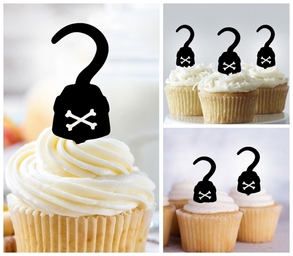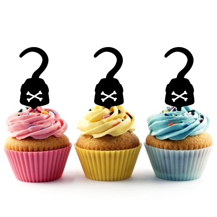 Hook Pirate Captain Cupcake 10 Toppers Laser Cut Acrylic for Wedding Birthday Baby Shower Bachelorette Engagement Party Decor