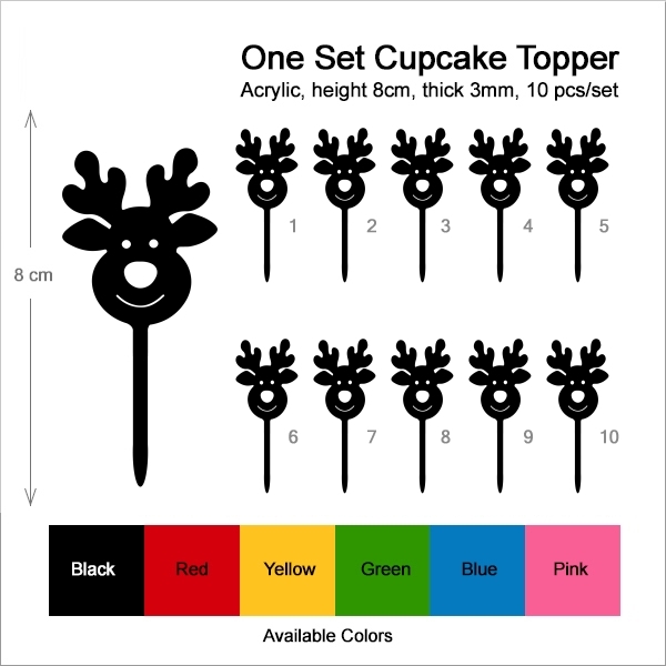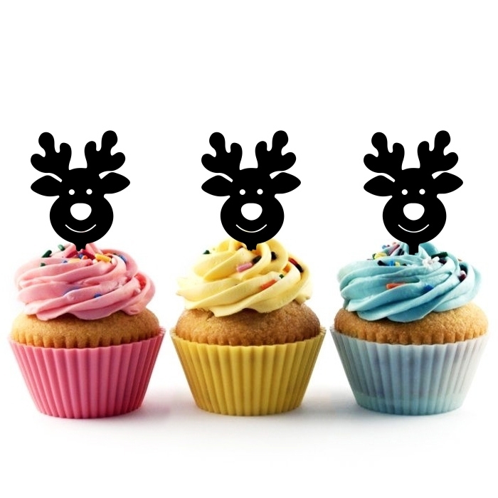 Cute Xmas Reindeer Cupcake 10 Toppers Laser Cut Acrylic for Wedding Birthday Baby Shower Bachelorette Engagement Party Decor