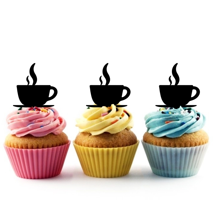 Coffee Cup Cupcake 10 Toppers Laser Cut Acrylic for Wedding Birthday Baby Shower Bachelorette Engagement Party Decor