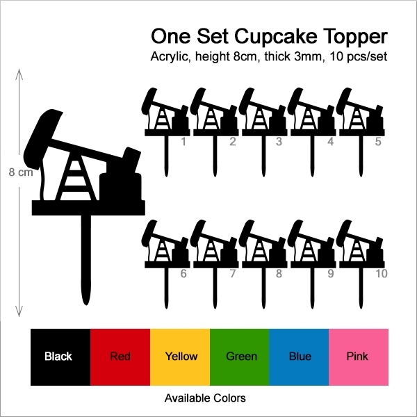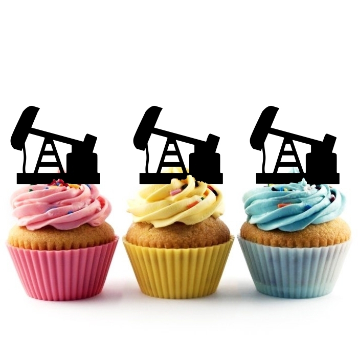 Oil Gas Mine Cupcake 10 Toppers Laser Cut Acrylic for Wedding Birthday Baby Shower Bachelorette Engagement Party Decor