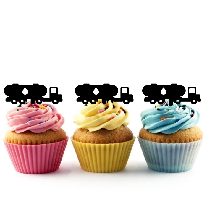 Fuel Oil Delivery Truck Cupcake 10 Toppers Laser Cut Acrylic for Wedding Birthday Baby Shower Bachelorette Engagement Party Decor
