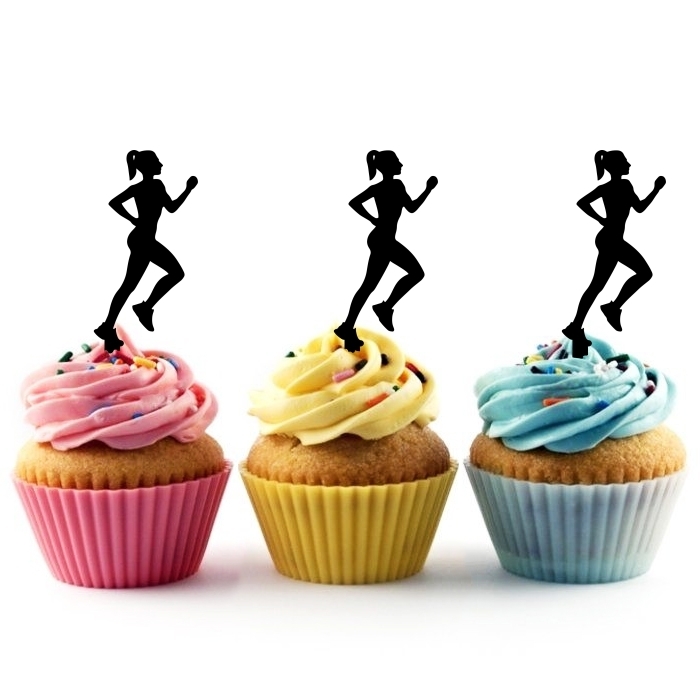 Running Female Jogging Girl Cupcake 10 Toppers Laser Cut Acrylic for Wedding Birthday Baby Shower Bachelorette Engagement Party Decor