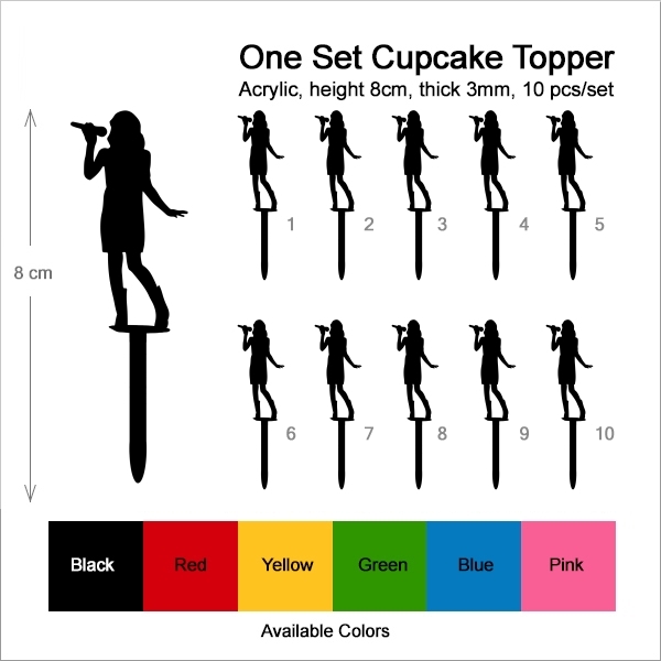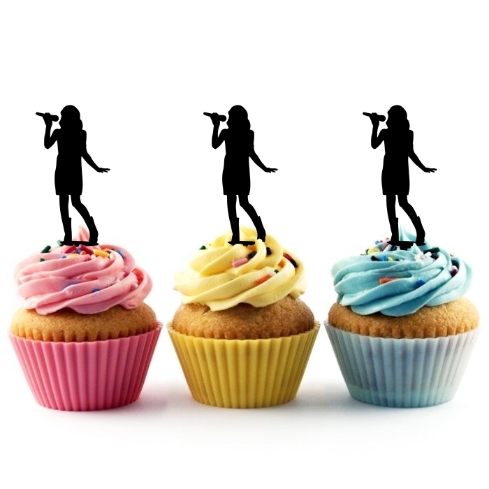 Girl Music Singer Cupcake 10 Toppers Laser Cut Acrylic for Wedding Birthday Baby Shower Bachelorette Engagement Party Decor