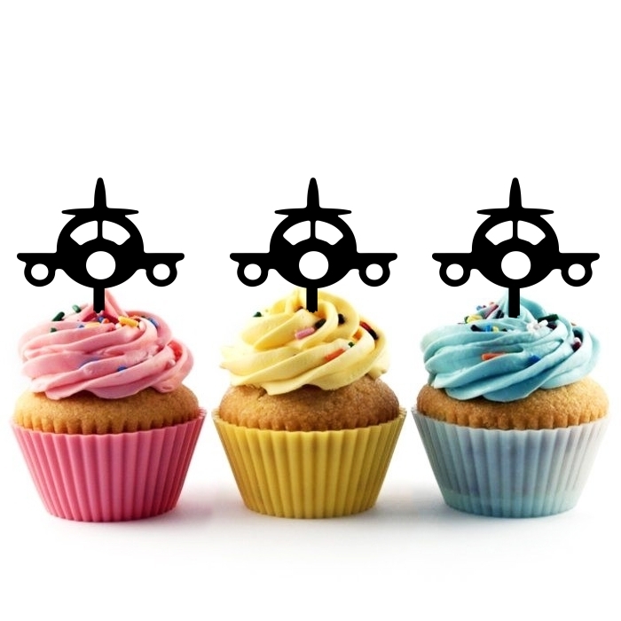Landing Aircraft Cupcake 10 Toppers Laser Cut Acrylic for Wedding Birthday Baby Shower Bachelorette Engagement Party Decor