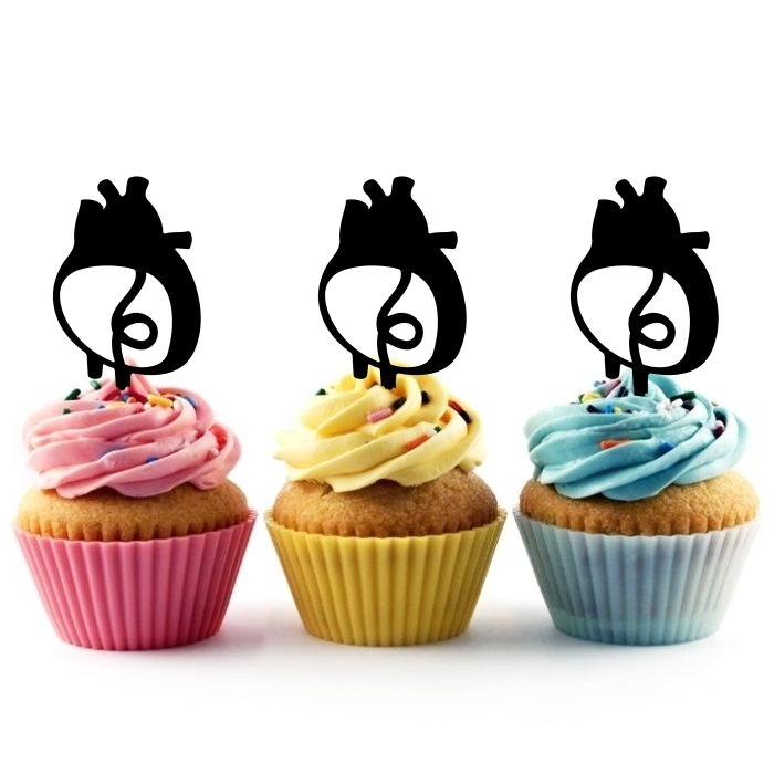 Human Heart Cardio Cupcake 10 Toppers Laser Cut Acrylic for Wedding Birthday Baby Shower Bachelorette Engagement Party Decor