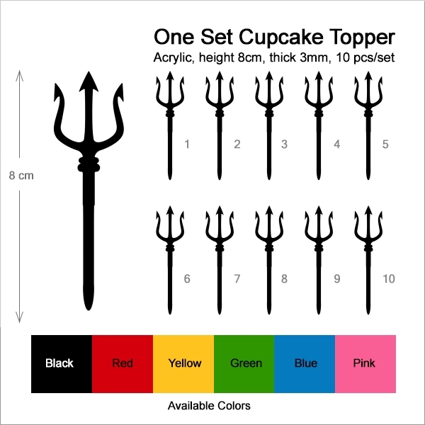 Trident Pitchfork Weapon Cupcake 10 Toppers Laser Cut Acrylic for Wedding Birthday Baby Shower Bachelorette Engagement Party Decor