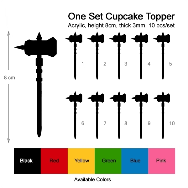 Hammer Weapon Cupcake 10 Toppers Laser Cut Acrylic for Wedding Birthday Baby Shower Bachelorette Engagement Party Decor