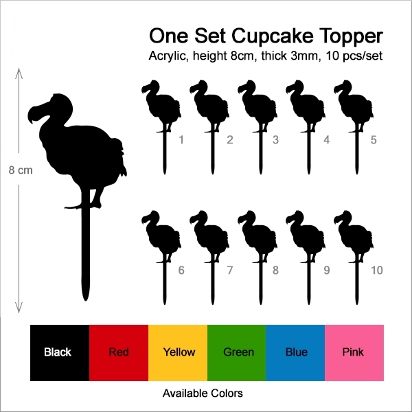 Dodo Bird Cupcake 10 Toppers Laser Cut Acrylic for Wedding Birthday Baby Shower Bachelorette Engagement Party Decor