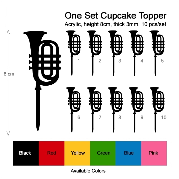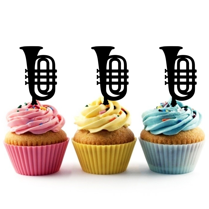 Cornet Music Instrument Cupcake 10 Toppers Laser Cut Acrylic for Wedding Birthday Baby Shower Bachelorette Engagement Party Decor
