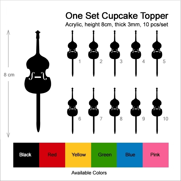 Double Bass Music Instrument Cupcake 10 Toppers Laser Cut Acrylic for Wedding Birthday Baby Shower Bachelorette Engagement Party Decor