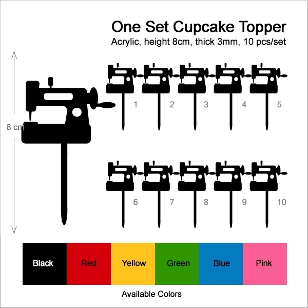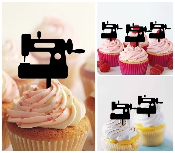 Sewing Machine Cupcake 10 Toppers Laser Cut Acrylic for Wedding Birthday Baby Shower Bachelorette Engagement Party Decor