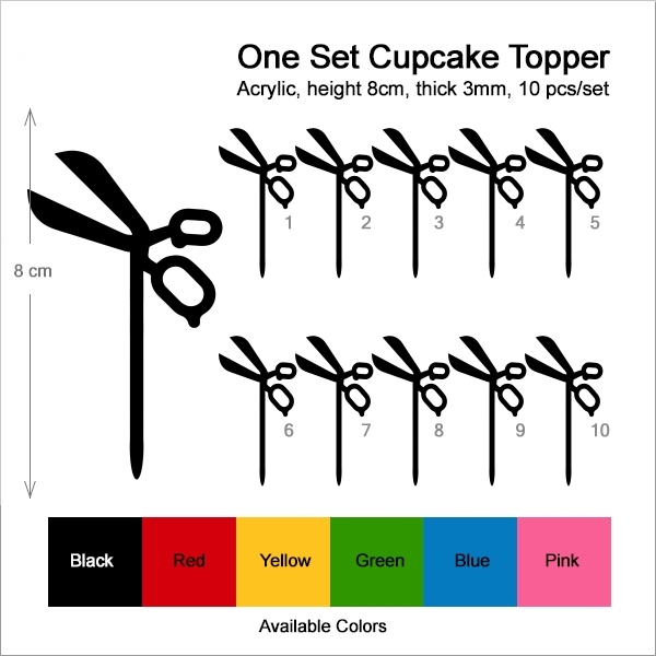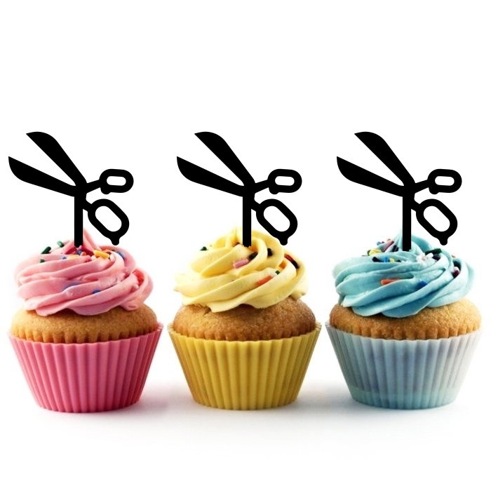 Scissors Cupcake 10 Toppers Laser Cut Acrylic for Wedding Birthday Baby Shower Bachelorette Engagement Party Decor
