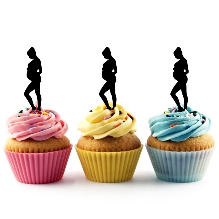 Pregnancy Infant Mom Cupcake 10 Toppers Laser Cut Acrylic for Wedding Birthday Baby Shower Bachelorette Engagement Party Decor