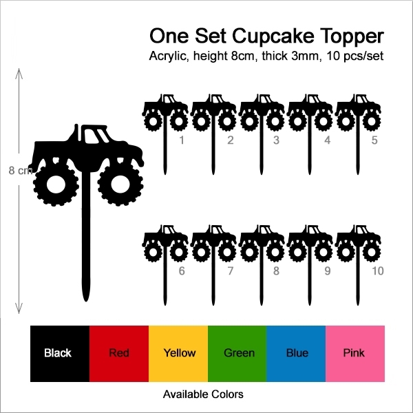Bigfoot Monster Truck Cupcake 10 Toppers Laser Cut Acrylic for Wedding Birthday Baby Shower Bachelorette Engagement Party Decor