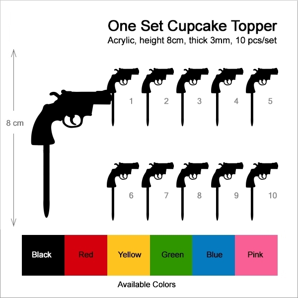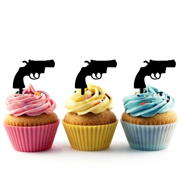 Short Revolvers Gun Cupcake 10 Toppers Laser Cut Acrylic for Wedding Birthday Baby Shower Bachelorette Engagement Party Decor
