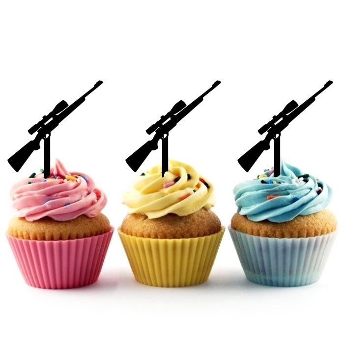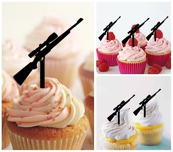 Hunting Rifle Gun Cupcake 10 Toppers Laser Cut Acrylic for Wedding Birthday Baby Shower Bachelorette Engagement Party Decor