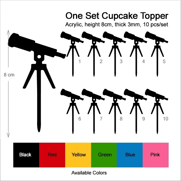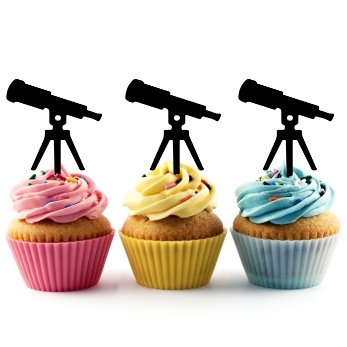 Astronomy Space Telescope Cupcake 10 Toppers Laser Cut Acrylic for Wedding Birthday Baby Shower Bachelorette Engagement Party Decor