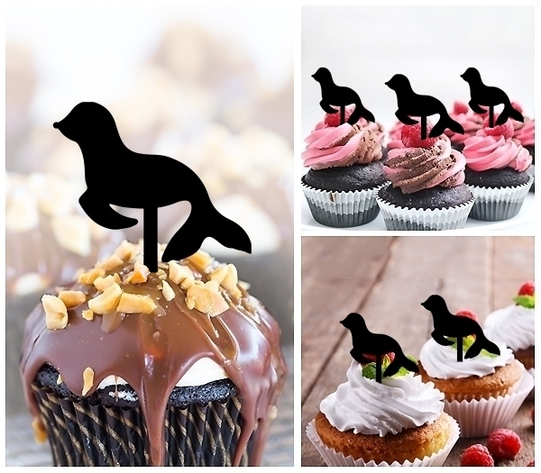 Sea Lion Cupcake 10 Toppers Laser Cut Acrylic for Wedding Birthday Baby Shower Bachelorette Engagement Party Decor