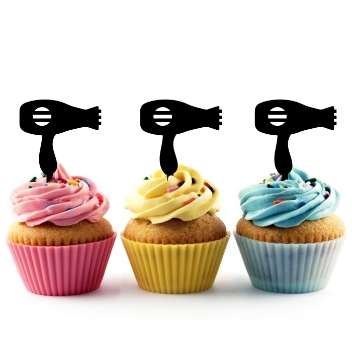 Hair Blow Dryer Cupcake 10 Toppers Laser Cut Acrylic for Wedding Birthday Baby Shower Bachelorette Engagement Party Decor